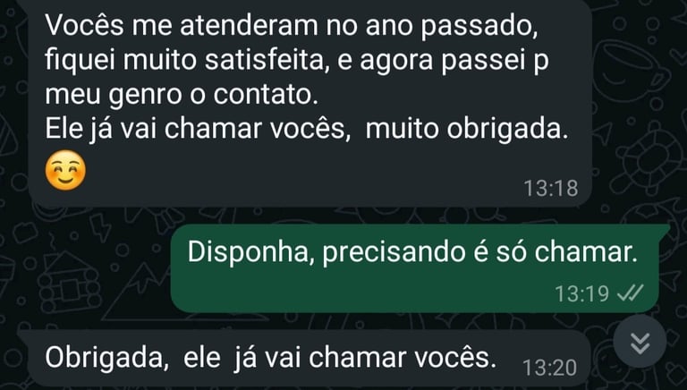 Atendimento rápido e presencial conforme disponibilidade na região